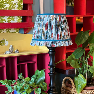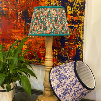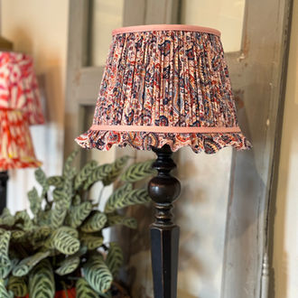 - A gathered lampshade paired with a pleated lining and delicate bias trim