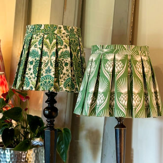 - A pleated lampshade with a pleated lining and intricate hand-sewn bias trim