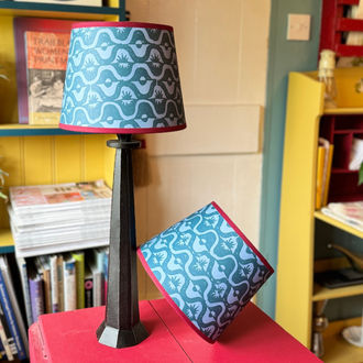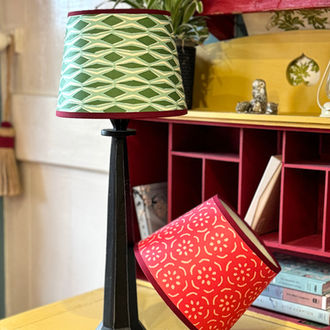 This One-Day Modern Lampshade Masterclass invites you to create a pair of bespoke hardback lampshades using handprinted paper or fabric provided in the course. Through this hands-on experience, you’ll learn to transform beautiful handprinted materials into two stunning lampshades, complete with an edge-bound trim.